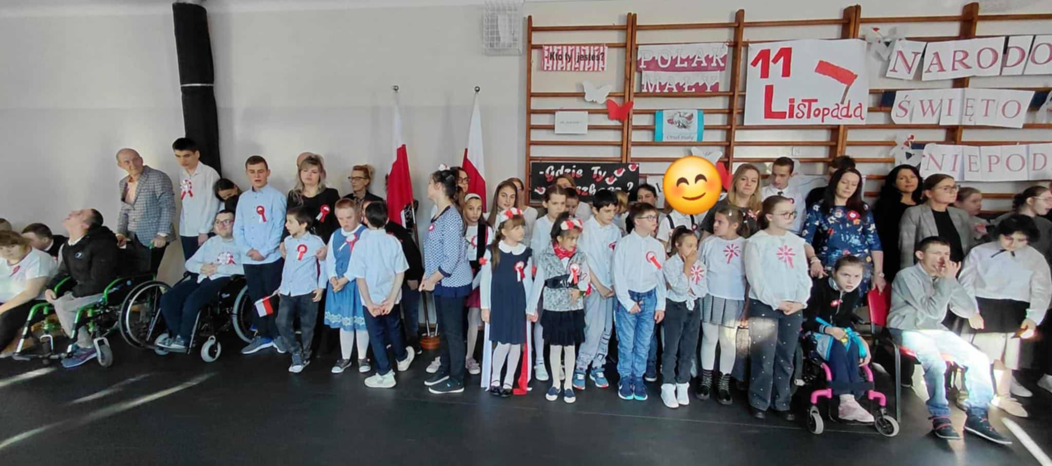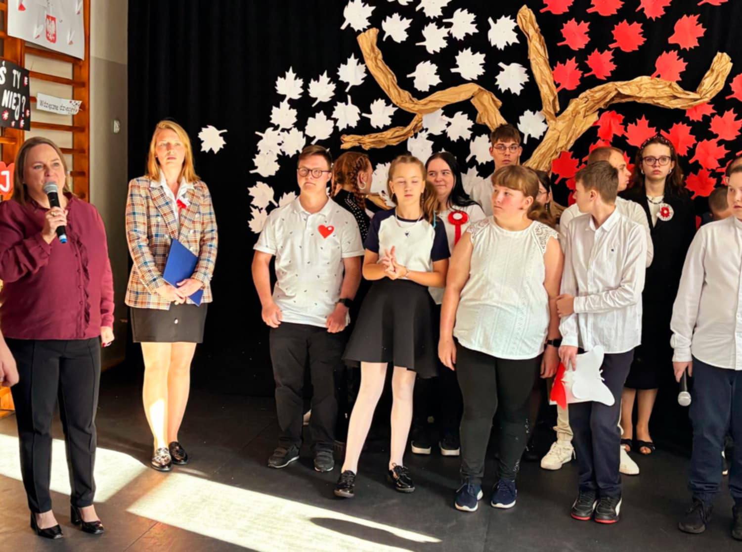 W drugim dniu obchodów 7 listopada br. o godzinie 11.11 cała społeczność szkolna zgromadziła się w sali gimnastycznej. Uroczystość rozpoczęła się wniesieniem sztandaru szkoły i odśpiewaniem hymnu państwowego. Uczennice i uczniowie z klas: 5L, 6L i 7L recytowali wiersze o tematyce patriotycznej. Nie zabrakło też pięknej pieśni wojskowej „Przybyli ułani pod okienko” napisanej w 1914 roku przez Feliksa Gwiżdża, który stworzył tekst do melodii ludowej. Uroczysty nastrój podkreśliła również dekoracja przygotowana przez uczniów. Na koniec przemówiła Pani dyrektor. Uczniowie i nauczyciele naszej szkoły z dumą uczestniczyli w tym ważnym wydarzeniu.